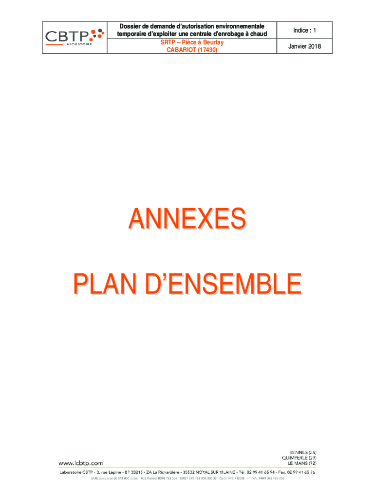 Dossier DE demand authorization environmental temporary exploiter one central enrage Chad SMTP Nice Betray CABARET (17430)Indie : 1 Janvier 2018ANNEXES PLAN DENSEMBLEDossier de demand authorization