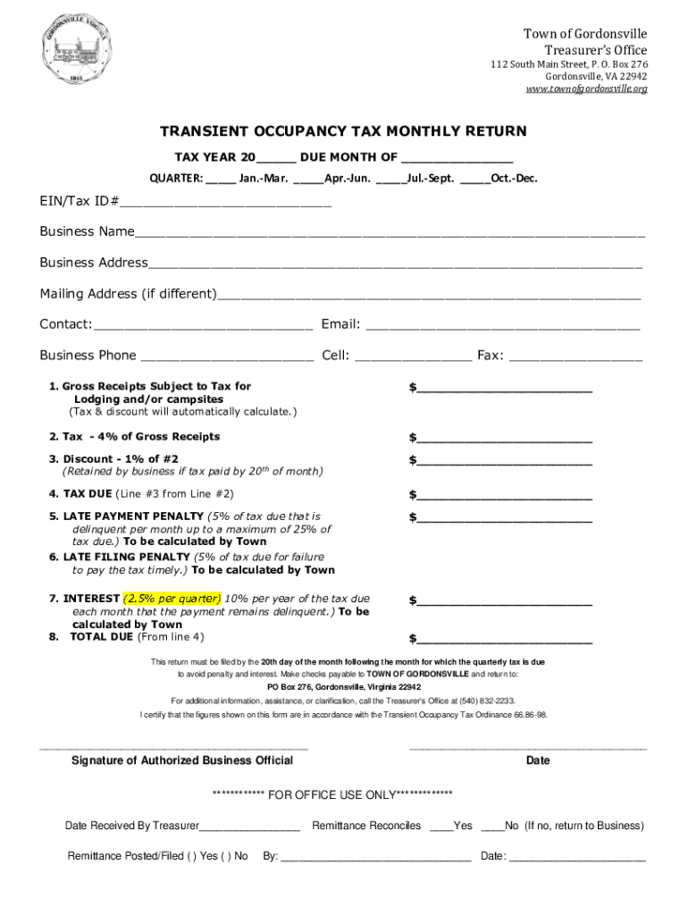 www.townofgordonsville.orgTRANSIENT OCCUPANCY TAX MONTHLY RETURN