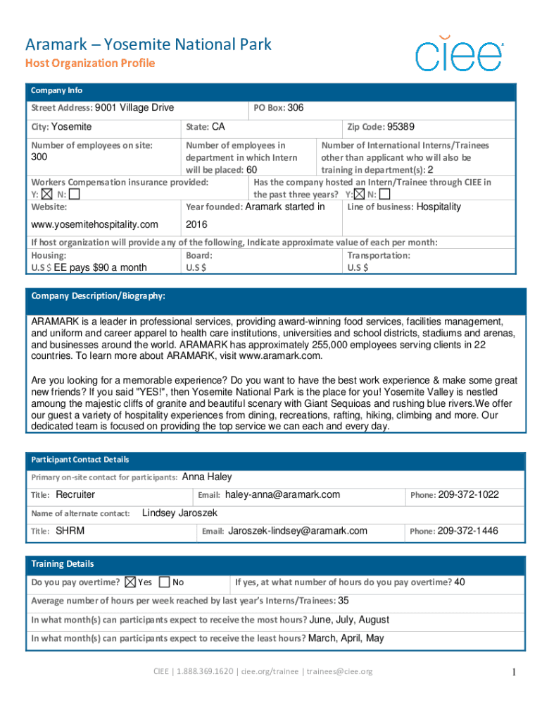 Aramark - Yosemite National is not the form you're looking for?Search for another form here.