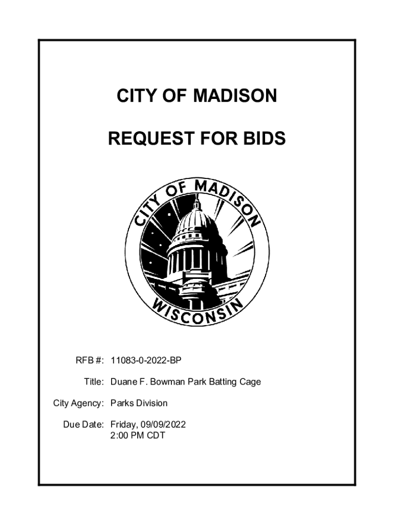 CITY OF MADISON REQUEST FOR BIDS #: 1108302022BP Title: Duane F. Bowman Park Batting Cage City Agency: Parks Division Due Date: Friday, 09/09/2022 2:00 PM REQUEST FOR BIDS # 1108302022BPTable of Contents