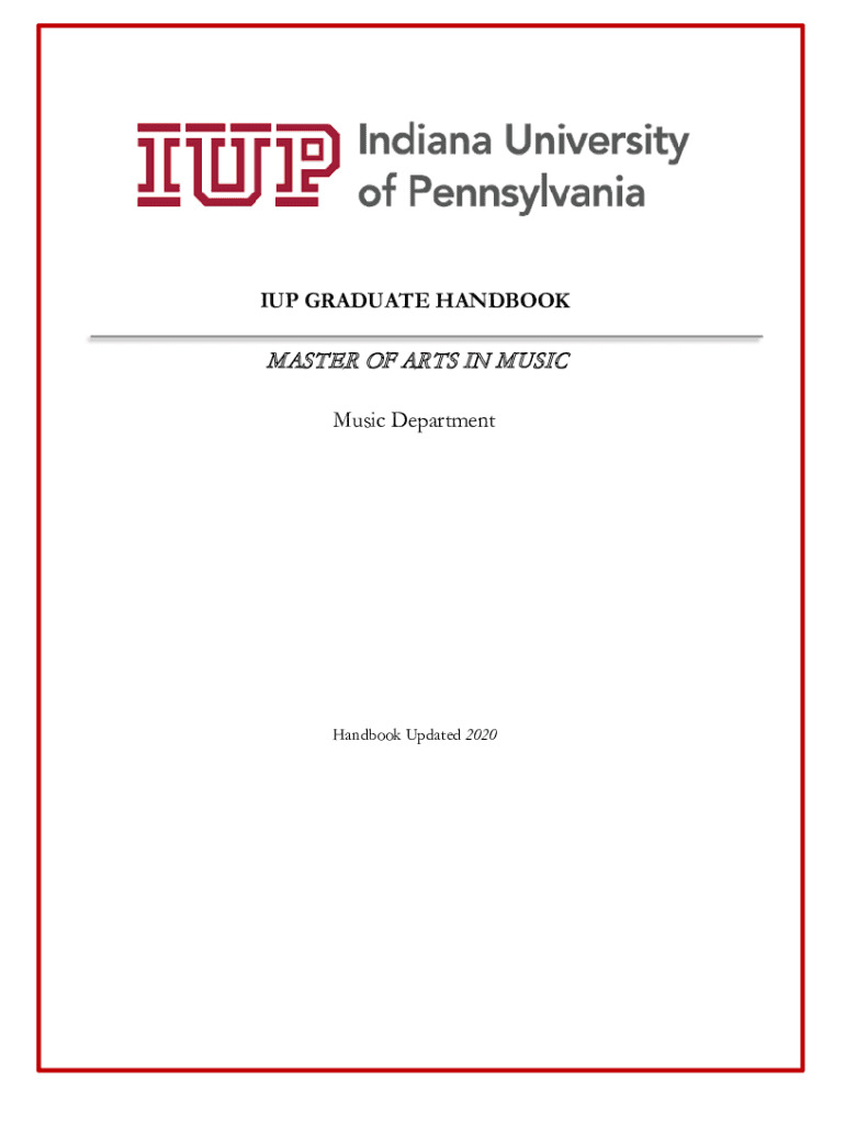 UP GRADUATE HANDBOOKMASTER OF ARTS IN MUSIC DepartmentHandbook Updated 2020M. A. in Music | Indiana University of Pennsylvania Master of Arts in Music