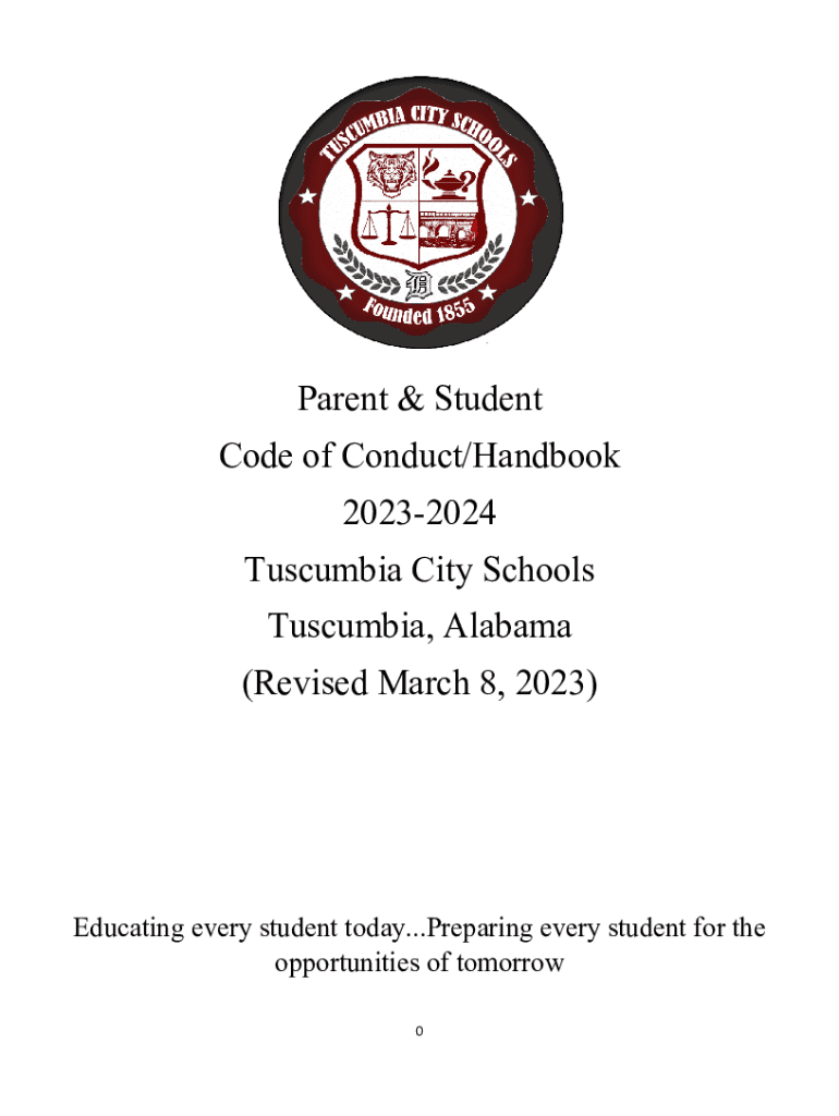 Parent & Student Code of Conduct/Handbook 20232024 Tuscumbia City Schools Tuscumbia, Alabama (Revised March 8, 2023)Educating every student today... Preparing every student for the opportunities of