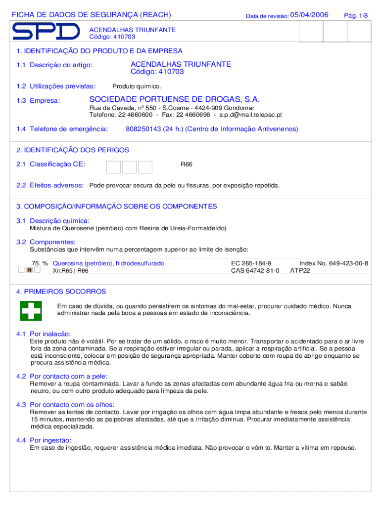FICA DE DADO SDE SEGURA (REACH)Data DE revise: 05/04/2006Pg. 1/8ACENDALHAS TRUNCATE