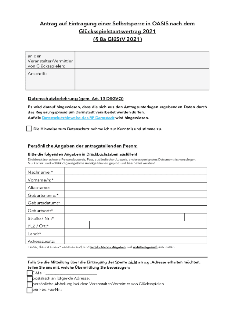 Holen Sie sich kostenlos Antrag auf Eintragung einer Selbstsperre in OASIS nach ...