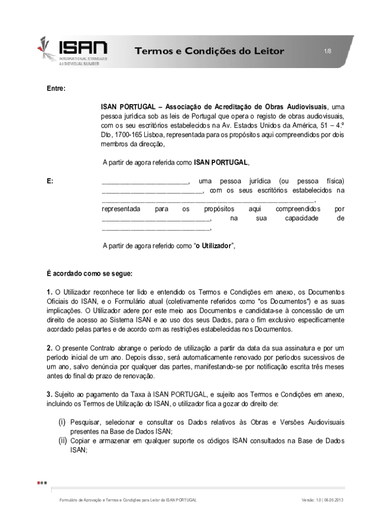APPROVAL FORM FOR THE SAN Terms e Candies do Leitor1/8Entre: SAN PORTUGAL Associate de Acreditao de Obras Audiovisuals, UMA person juridical sob as leis de Portugal Que opera o register DE bras audiovisuals,