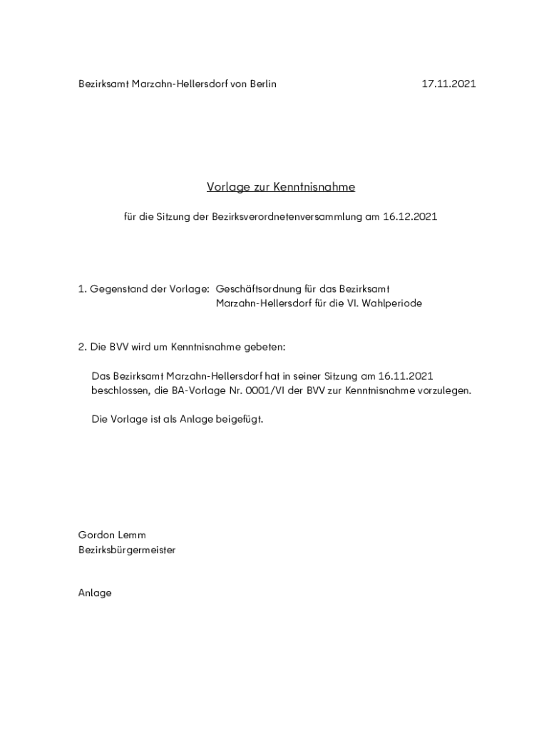 for die Sitting her Bezirksverordnetenversammlung am 16.12.20211. Gegenstand her Village: Geschftsordnung for was Bezirksamt