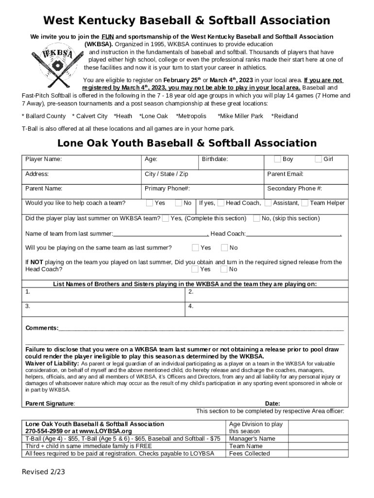 The Western Kentucky Baseball Schedule Scores & Stats is a fillable form in MS Word extension required to be submitted to the required address in order to provide certain info. It needs to be filled-out and signed, which is possible manually in hard copy, or via a particular solution e. g. PDFfiller. It lets you fill out any PDF or Word document directly in your browser, customize it according to your requirements and put a legally-binding electronic signature. Right after completion, you can send the Western Kentucky Baseball Schedule Scores & Stats to the relevant person, or multiple individuals via email or fax. The editable template is printable too from PDFfiller feature and options proposed for printing out adjustment. In both digital and physical appearance, your form should have a neat and professional look. Also you can turn it into a template to use it later, there's no need to create a new file from scratch. All you need to do is to amend the ready form.