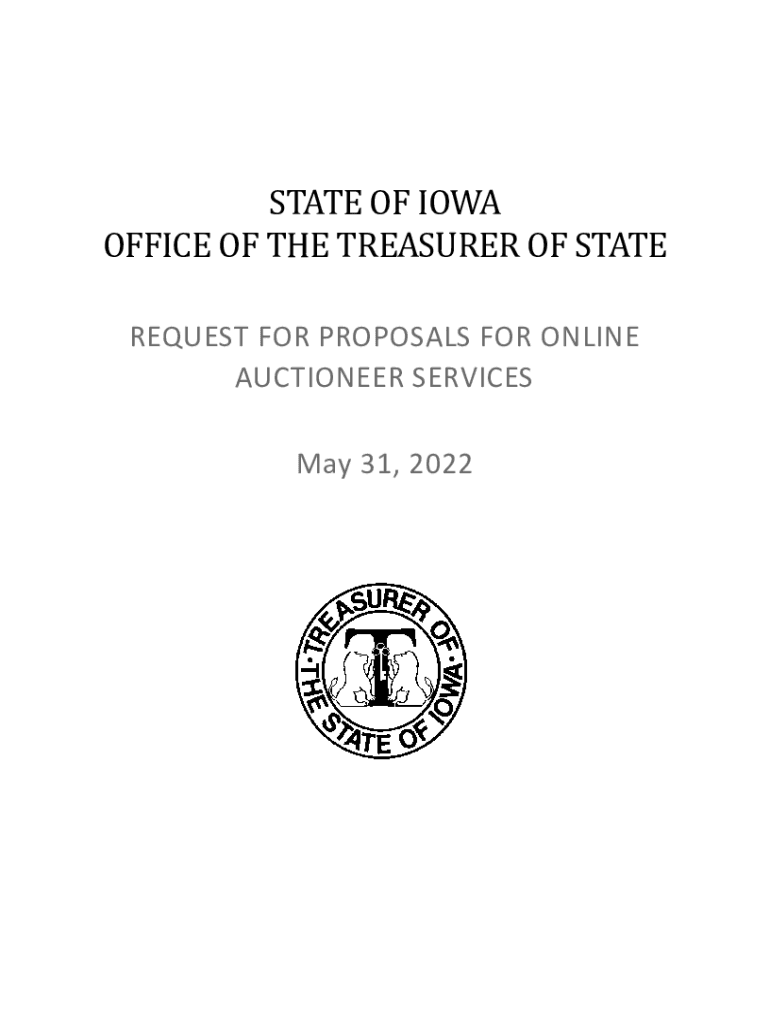 STATE OF IOWA OFFICE OF THE TREASURER OF STATE REQUEST FOR PROPOSALS FOR ONLINE AUCTIONEER SERVICES May 31, 2022Table of Contents Table of Contents ..........................................................................................................................................