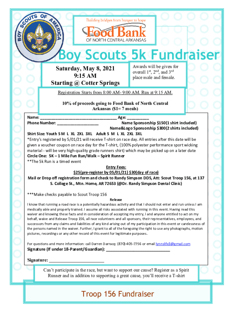 Fill out your boy scouts 5k fundraiser online with pdfFiller!