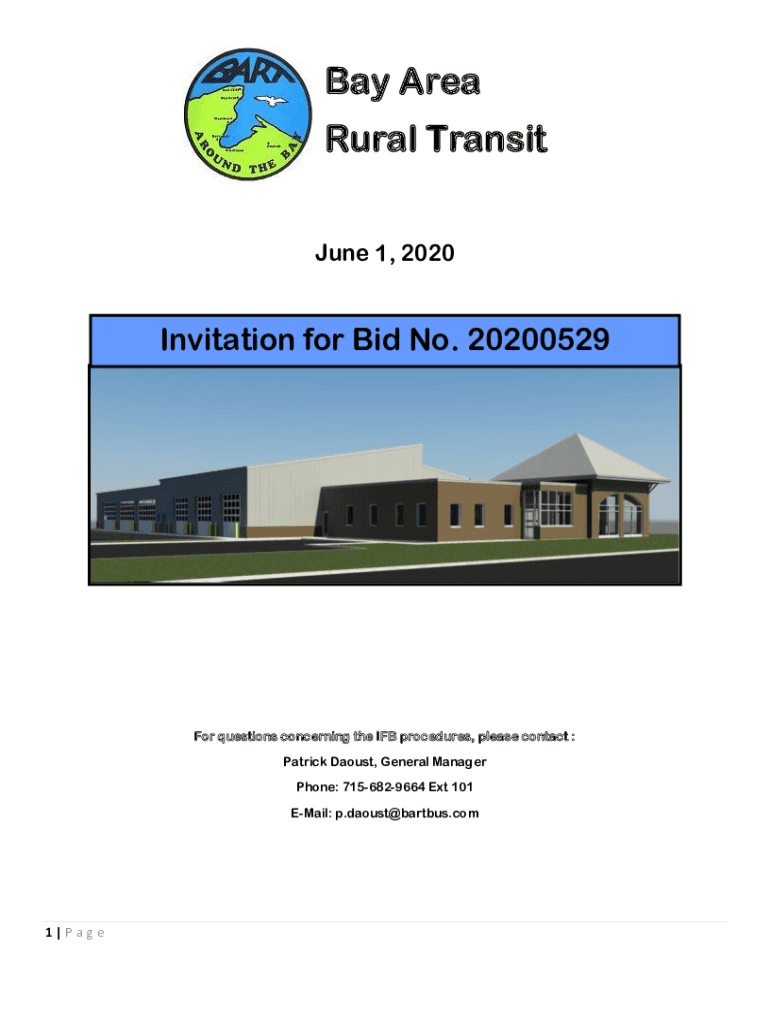June 1, 2020Invitation for Bid No. 20200529For questions concerning the IF procedures, please contact :Patrick Daoist, General Manager