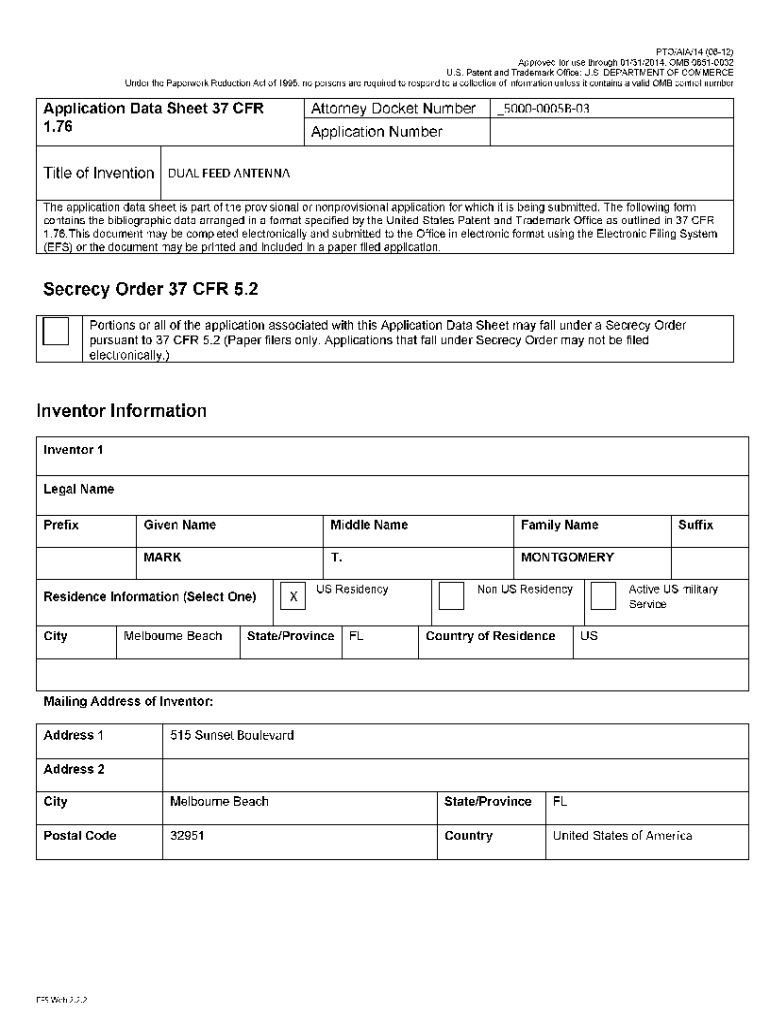 PTO/Ala/14 (0812) Approved for use through 01/31/2014. OMB 06510032US. Patent and Trademark OFCE; US. DEPARTMENT OF COMMERCE Under the Paperwork Reduction Act of 1995, no persons are required to respond