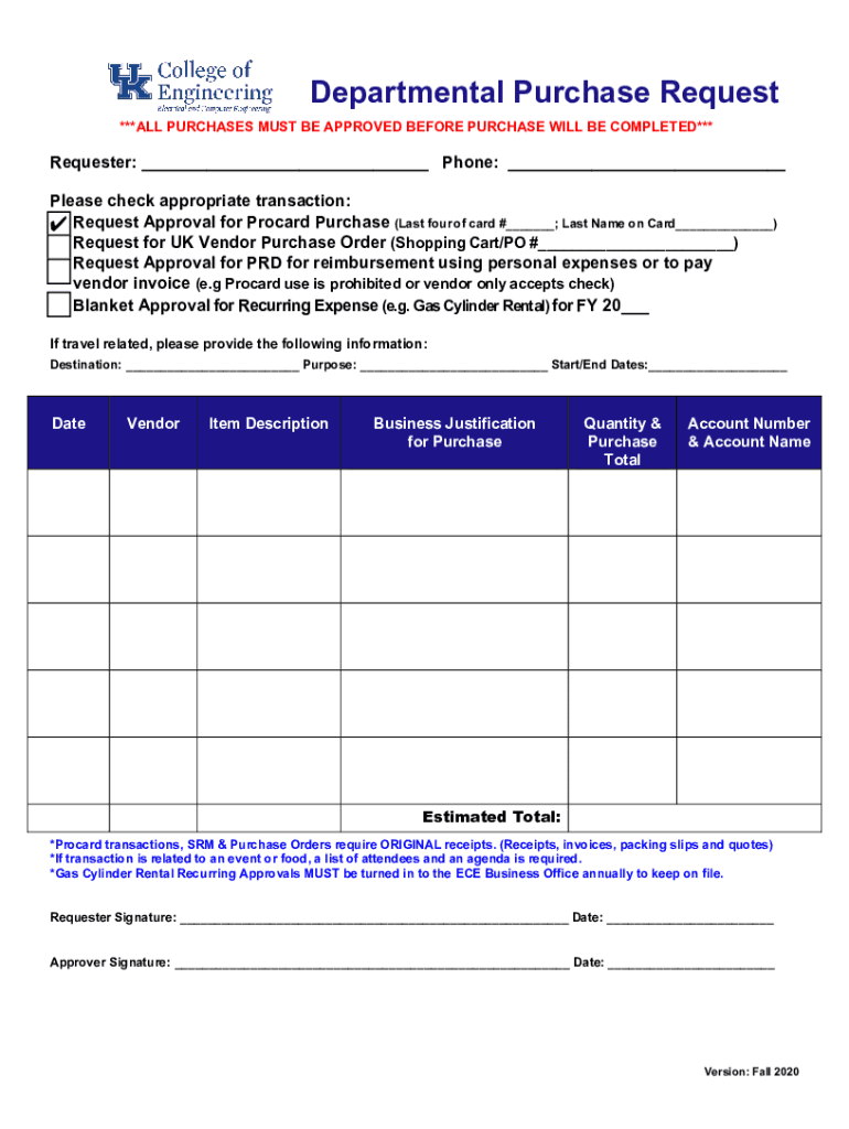 Edit your departmental purchase request form online