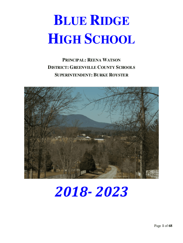BLUE RIDGE HIGH SCHOOL PRINCIPAL: RENA WATSON DISTRICT: GREENVILLE COUNTY SCHOOLS SUPERINTENDENT: BURKE ROYSTER2018 2023-Page 1 of 68STAKEHOLDER INVOLVEMENT FOR SCHOOL PLAN (Mandated Component) POSITIONNAME1.