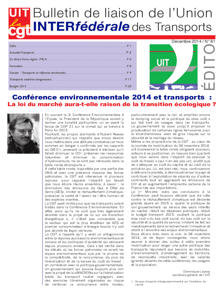 Obtenir le gratuit Bulletin de liaison de l'Union Interfdrale des transports N81