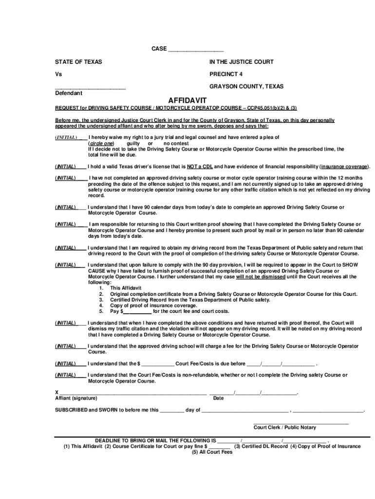 Get the free AFFIDAVIT TO TAKE A DRIVING SAFETY COURSE