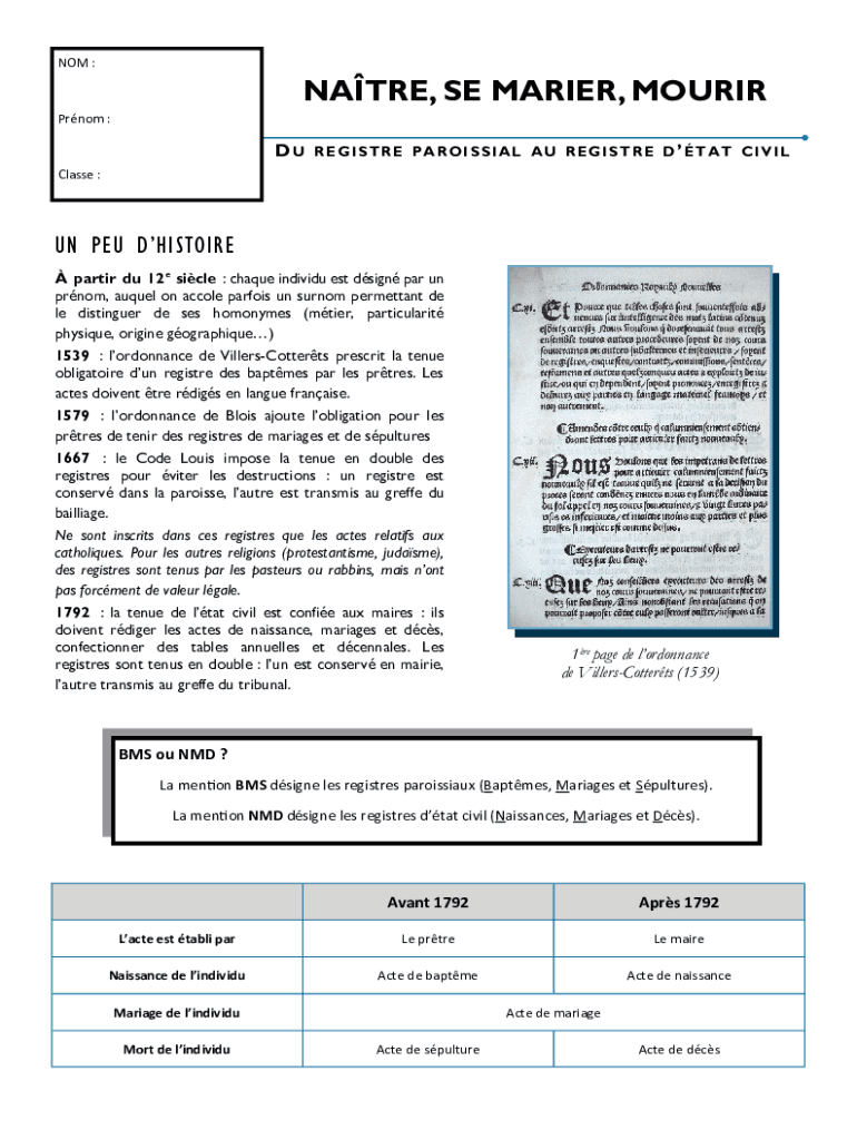 Natre se marier mourir est un formulaire administratif permettant de déclarer les naissances, mariages et décès.