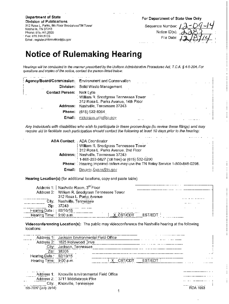 Division of Publications Department of State Use Only312 Rosa L. Parks, 8th Floor Snodgrass Tower