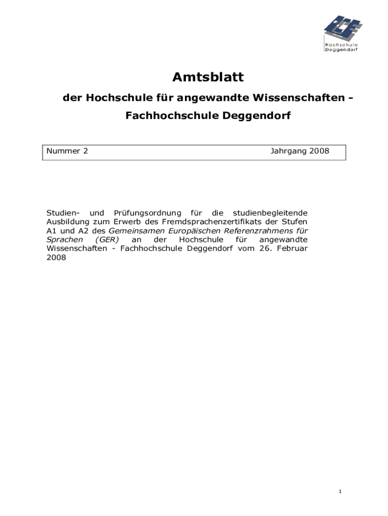 her Hochschule for angewandte Wissenschaften Fachhochschule DeggendorfNummer 2Jahrgang 2008Studien UND Prfungsordnung for die studienbegleitende