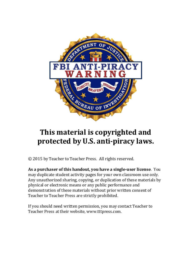 Get the free This material is copyrighted and protected by U.S. anti-piracy