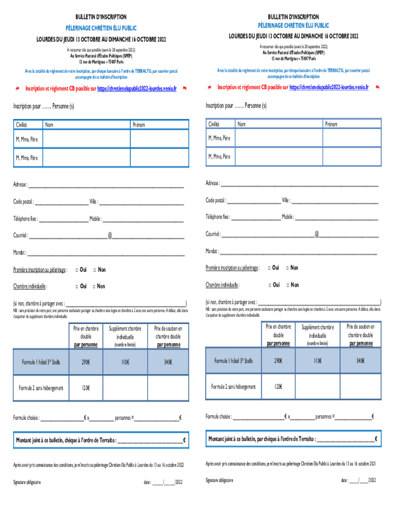 Qu'est-ce que bulletin d'inscription - pèlerinage?