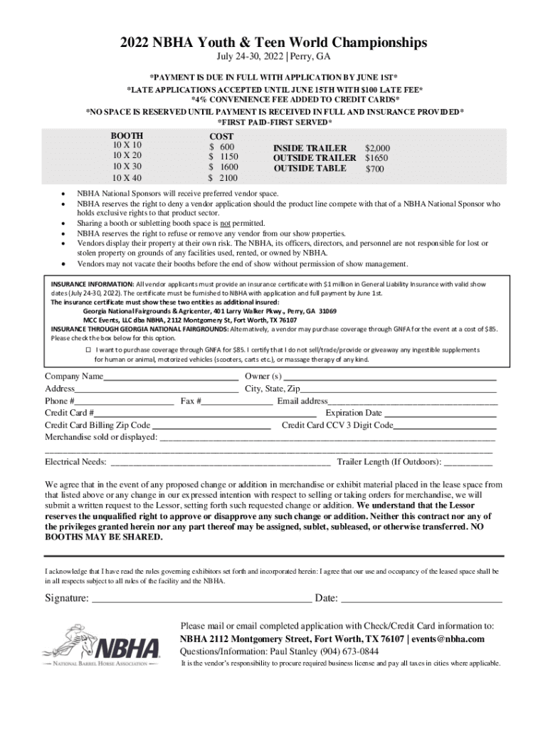 Submit the completed form along with payment to the designated NBHA representative or mailing address.