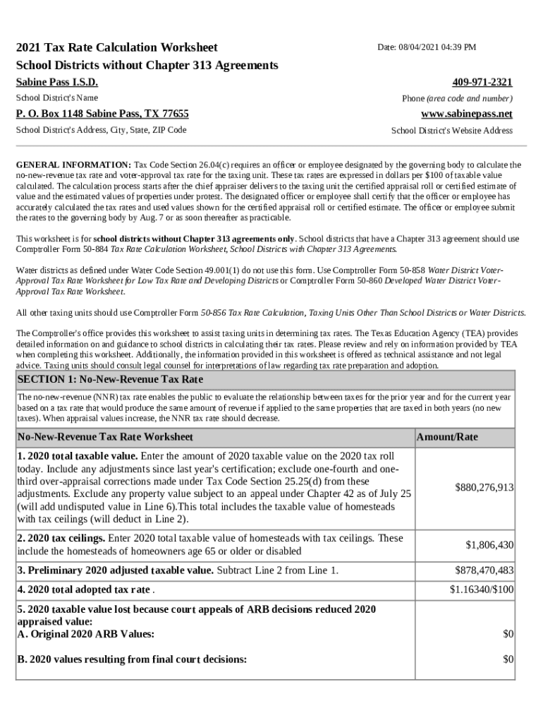 2021 Tax Rate Calculation Worksheet