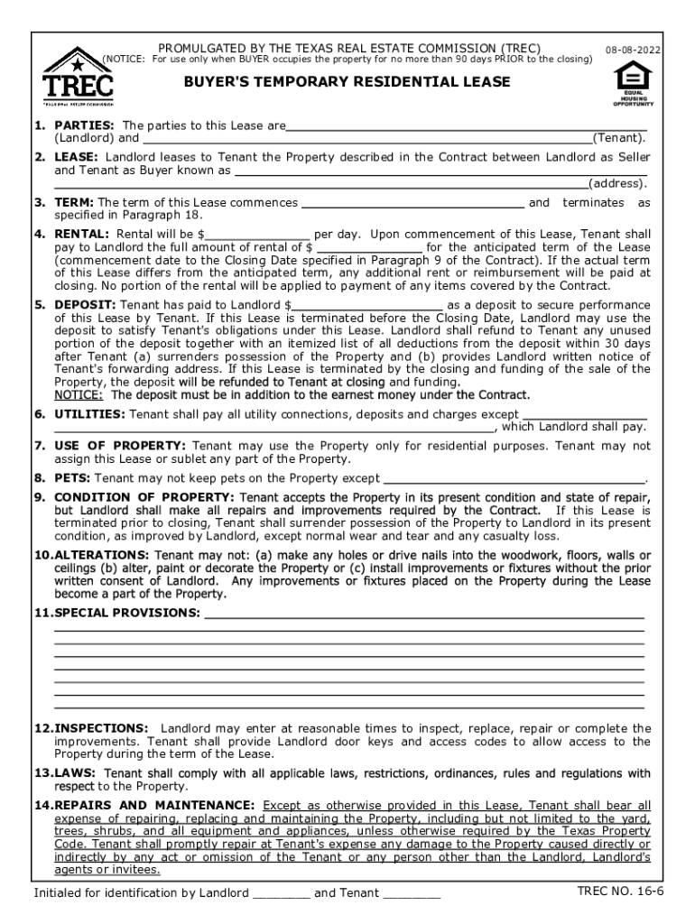 Get the free Buyer's Temporary Residential Lease (TREC No. 16-6)