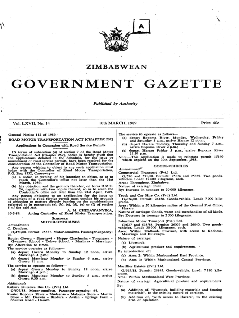 Punished by Authority. LXVII, No. 1410th MARCH, 1989General Notice 112 of 1989.\'