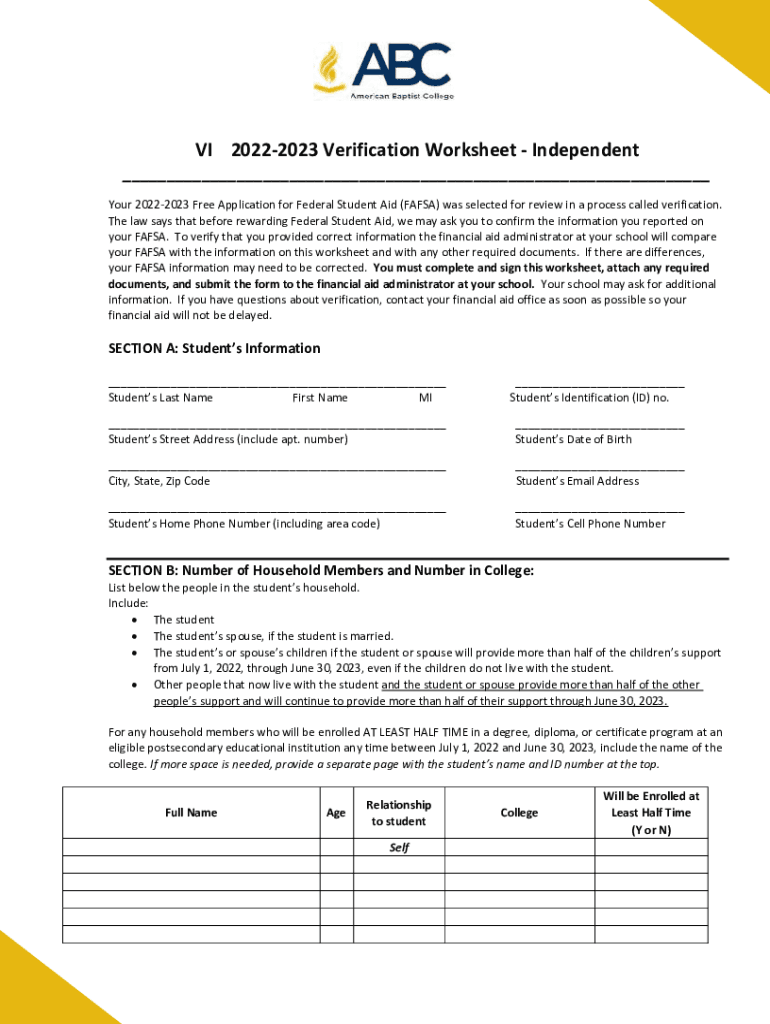 Edit your verification-worksheet-instructions-independent-student form online