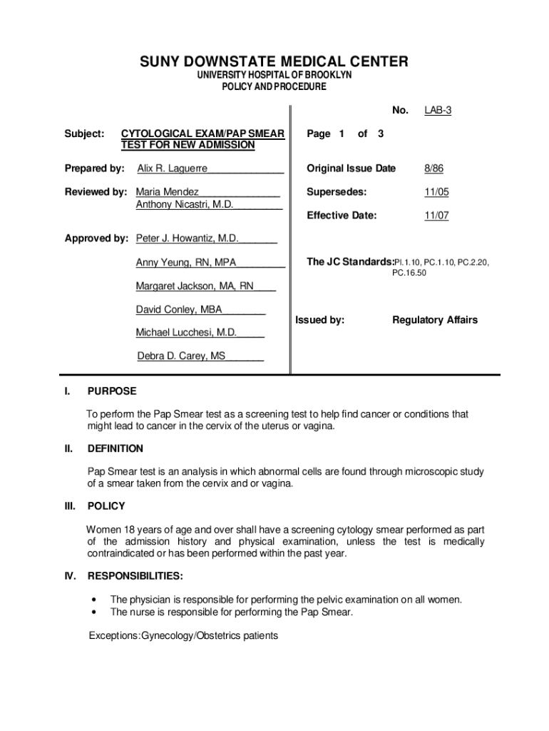 Subject:CYTOLOGICAL EXAM/PAP SMEAR