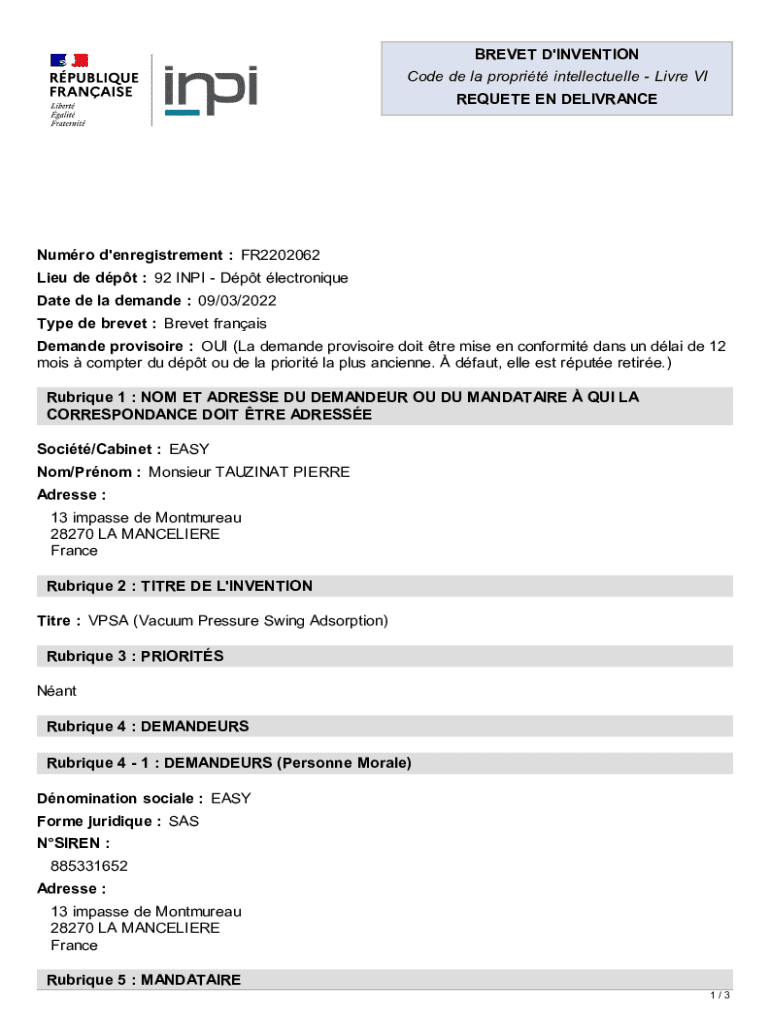Comment remplir brevet d'invention certificat d'utilité?