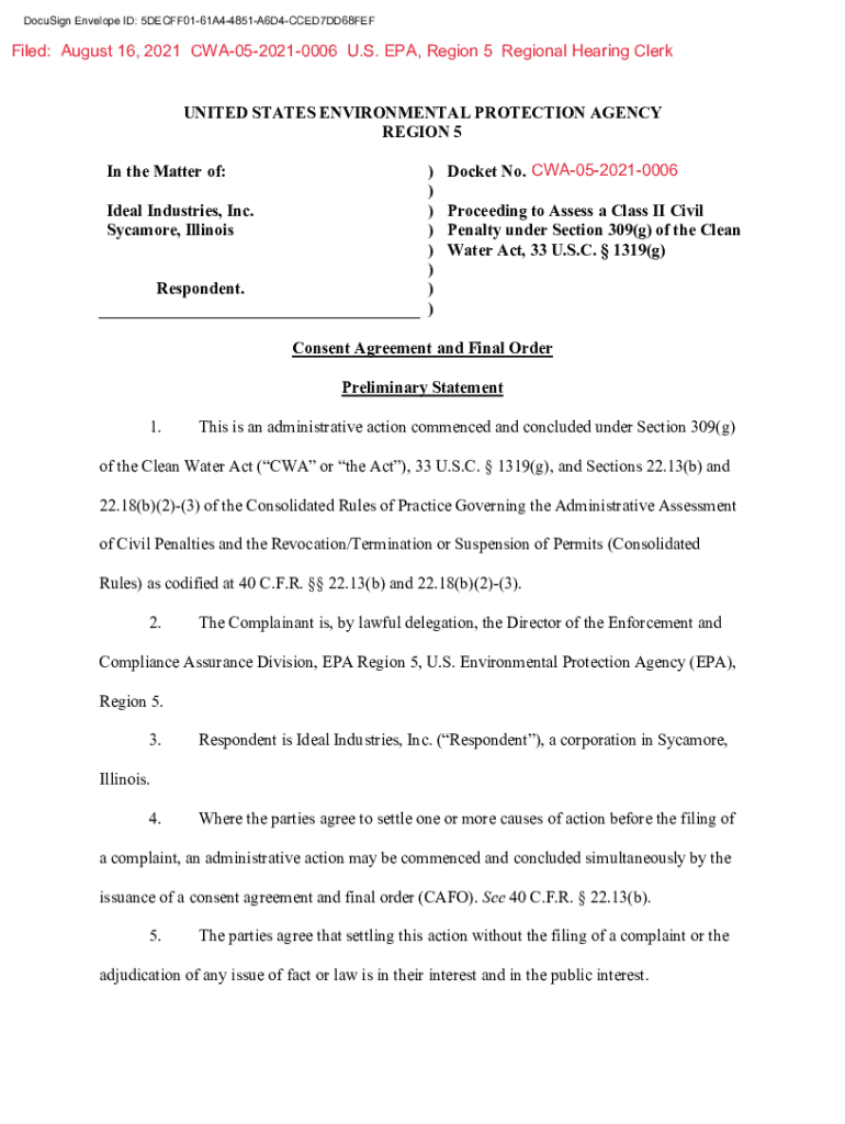 DocuSign Envelope ID: 5DECFF0161A44851A6D4CCED7DD68FEFFiled: August 16, 2021 CWA0520210006 U.S. EPA, Region 5 Regional Hearing Clerk UNITED STATES ENVIRONMENTAL PROTECTION AGENCY REGION 5 In the Matter