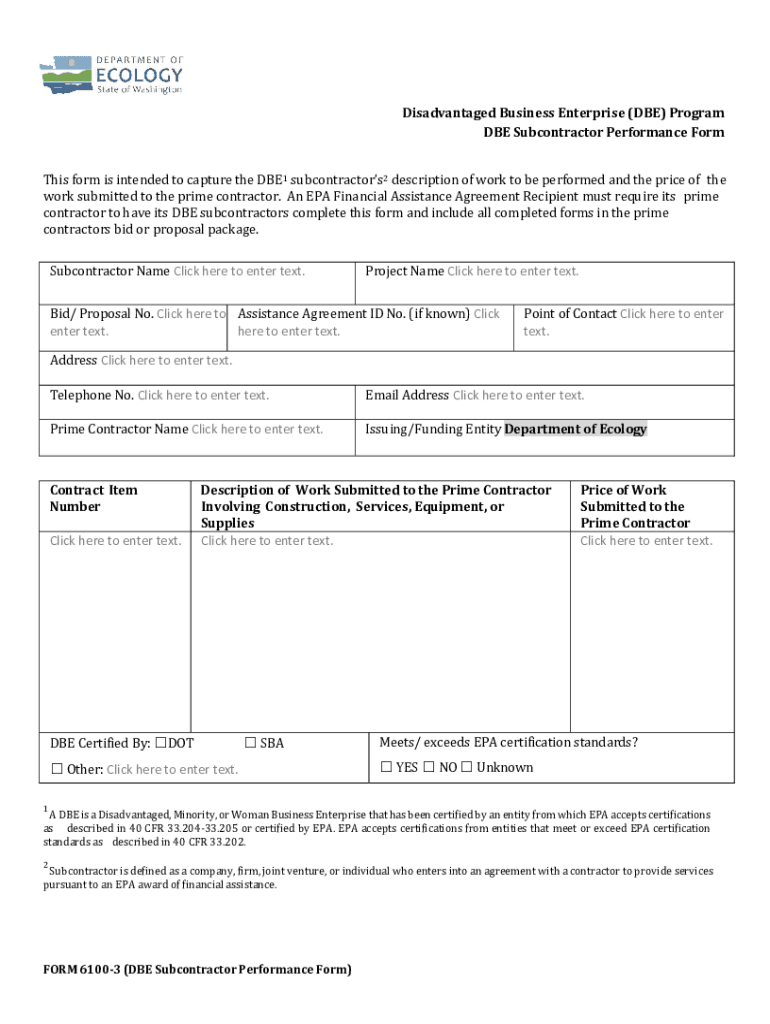 Disadvantaged Business Enterprise (BE) Program BE Subcontractor Performance Form This form is intended to capture the DBE1 subcontractors2 description of work to be performed and the price of the