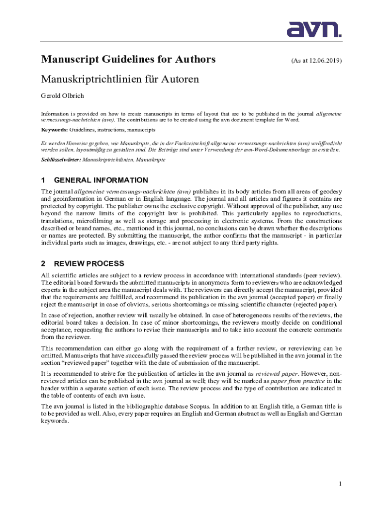Manuscript Guidelines for Authors(As at 12.06.2019)Manuskriptrichtlinien for Authored Gerald Ostrich Information is provided on how to create manuscripts in terms of layout that are to be published
