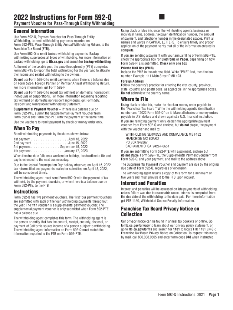 2022 Instructions for Form 592QPayment Voucher for Walkthrough Entity WithholdingGeneral Information