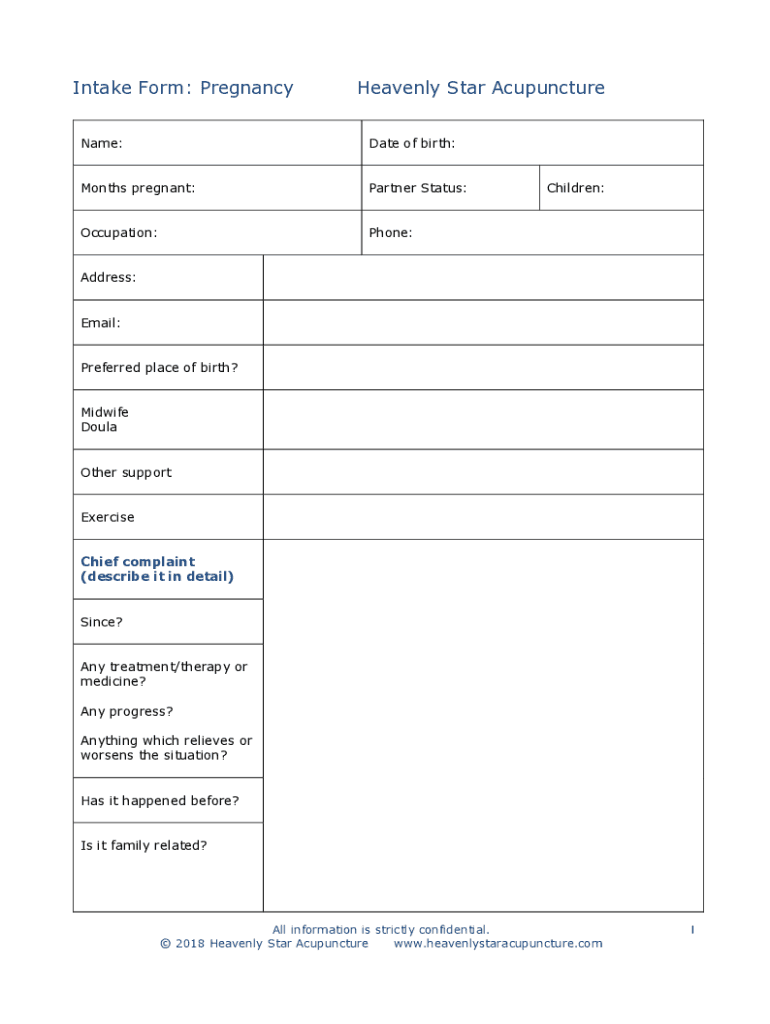 Get the free Intake Form: Pregnancy Heavenly Star Acupuncture