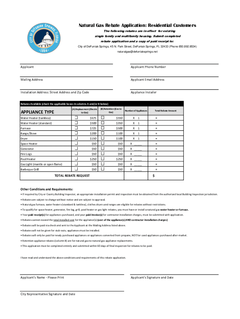 Get the free Natural Gas Rebate Application: Residential Customers ...
