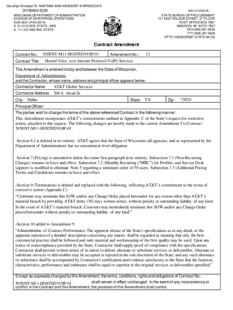 DocuSign Envelope ID: A8AF59A2930643DBBDE781BF06D2C615201905035230MA1413335UAWISCONSIN DEPARTMENT OF ADMINISTRATION DIVISION OF ENTERPRISE OPERATIONS DOA3051 (R 04/2019) S. 51.01(5) WIS. STATS.; AND