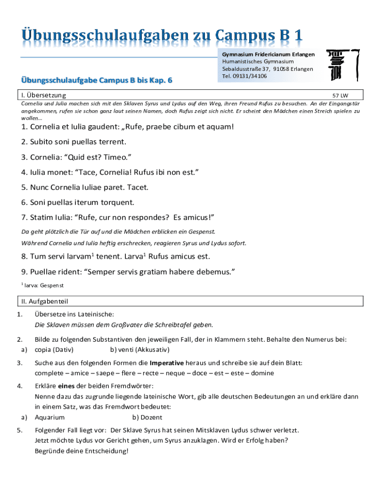 Bungsschulaufgabe Campus B bis Key. 6Gymnasium Fridericianum Erlangen