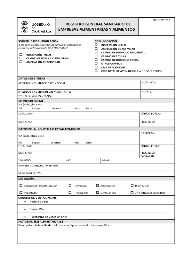 Retro. entradaREGISTRO GENERAL SANITATION DE