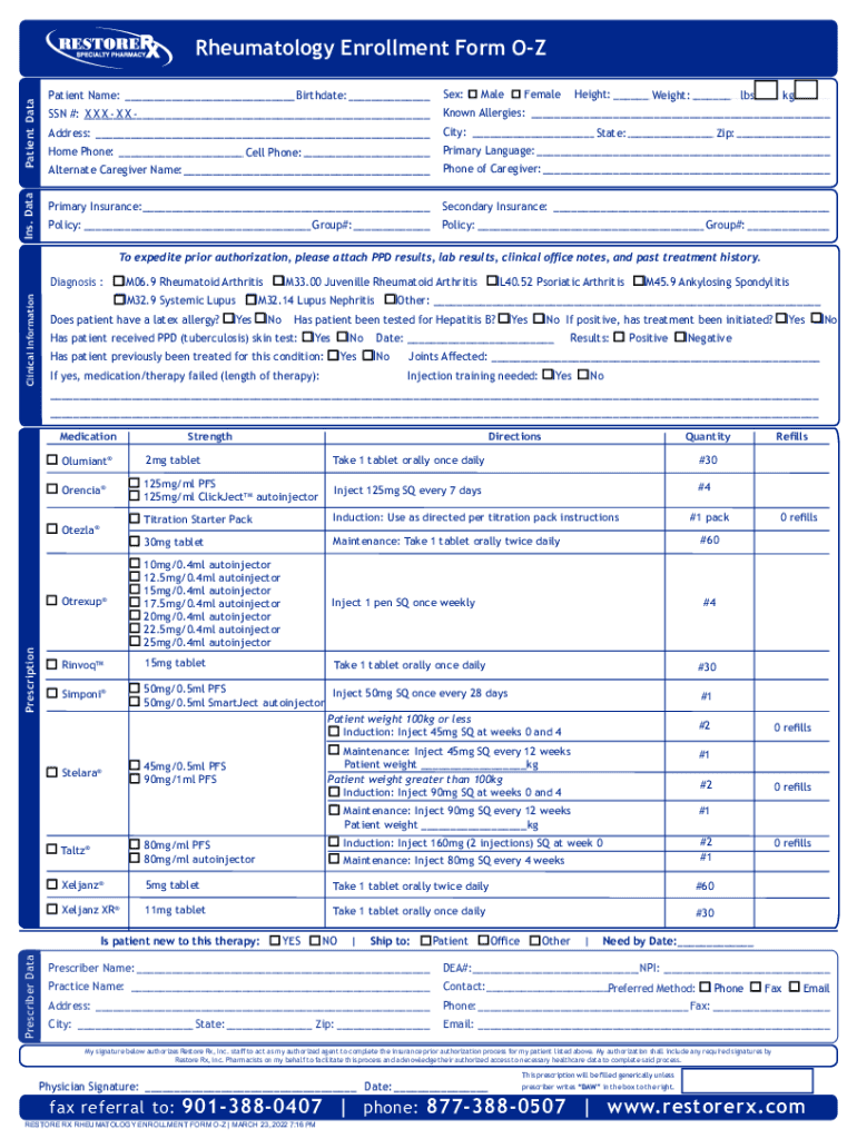 Ins. Outpatient DataRheumatology Enrollment Form OZ