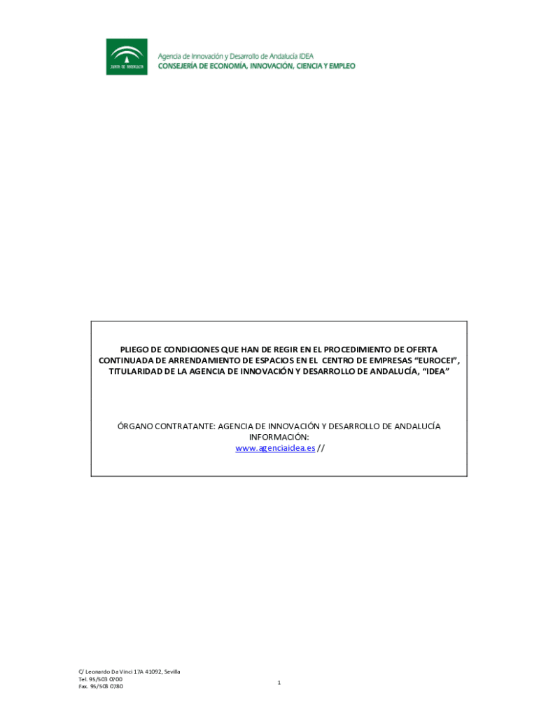 DIEGO DE CONDITIONS QUE HAN DE REGOR EN EL PROCEDIMIENTO DE OMERTÀ CONTINUA DA DE ARRENDAMIENTO DE SPACIOUS EN EL CENTR ODE EMPRESS EURO CEI, TITULARIDAD DE LA AGENCY DE INNOVATION Y DESARROLLO DE