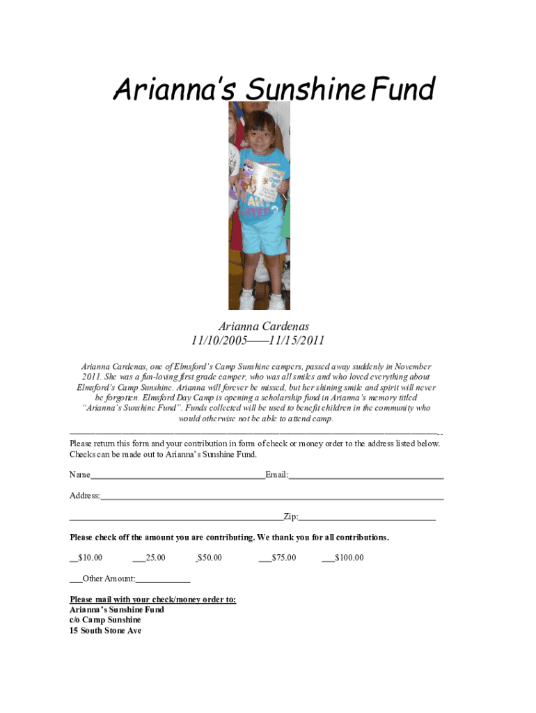 Get the free Arianna's Sunshine Fund