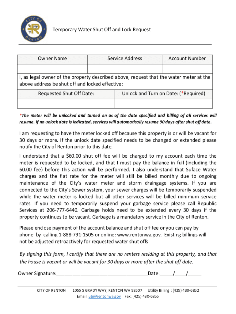 TemporaryWaterShutOffandLockRequestOwnerNameServiceAddressAccountNumberI, aslegalownerofthepropertydescribedabove, requestthatthewatermeteratthe