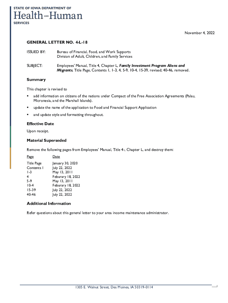 Get the free General Letter No. 4-L-18