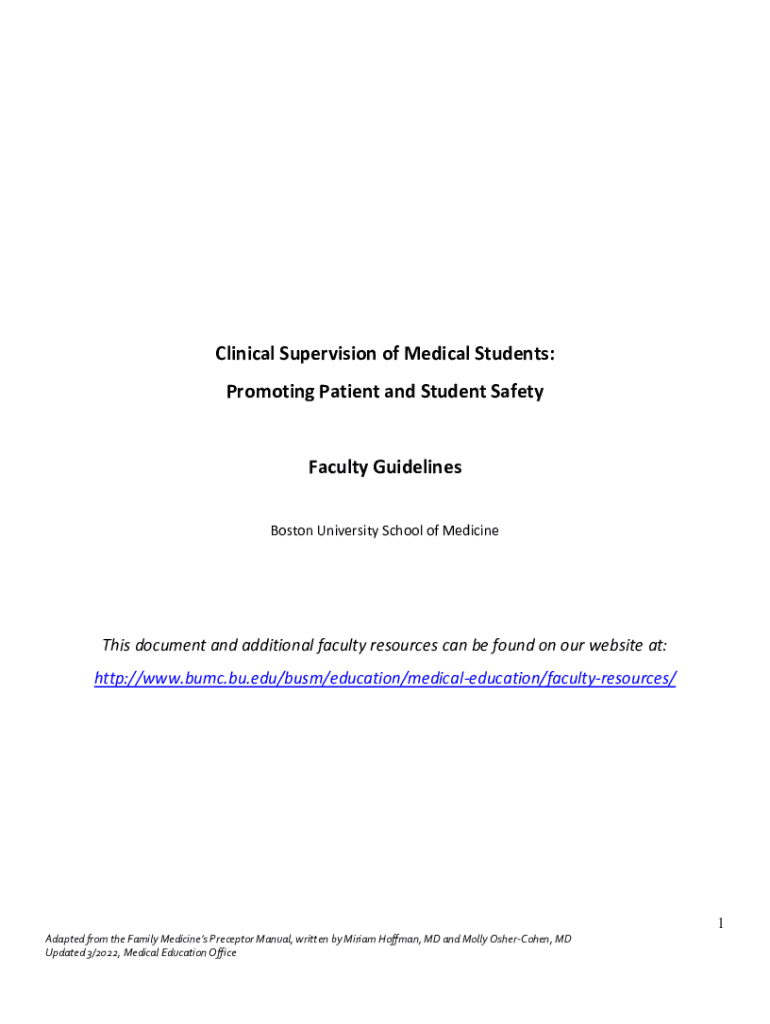 Boston University School of Medicines document and additional faculty resources can be found on our