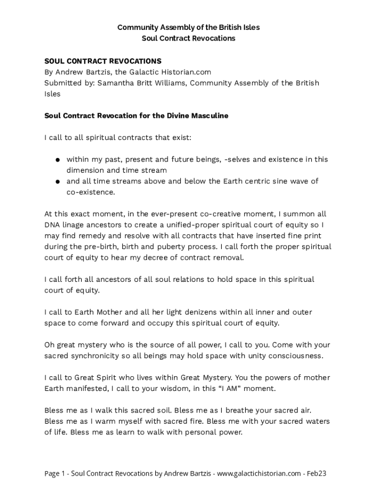 CommunityAssemblyoftheBritishIsles SoulContractRevocations ByAndrewBartzis, theGalacticHistorian.com Submitted by:SamanthaBrittWilliams, CommunityAssemblyoftheBritish Isles SoulContractRevocationfortheDivineMasculine