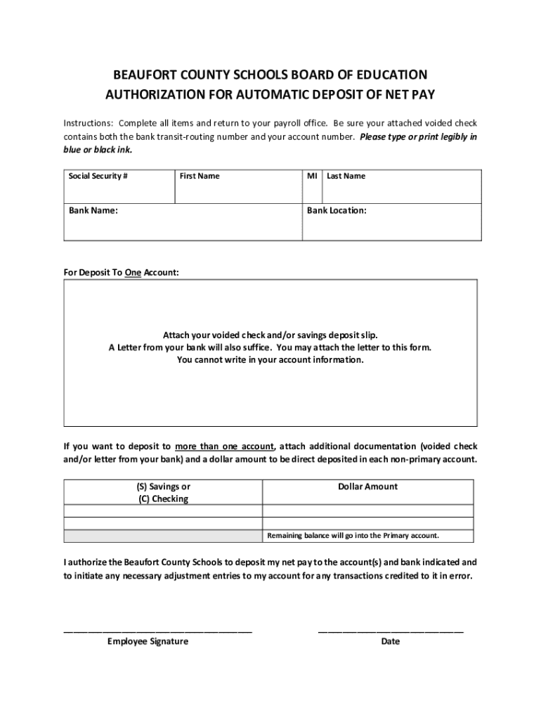 Instructions: Complete all items and return to your payroll office. Be sure your attached voided check