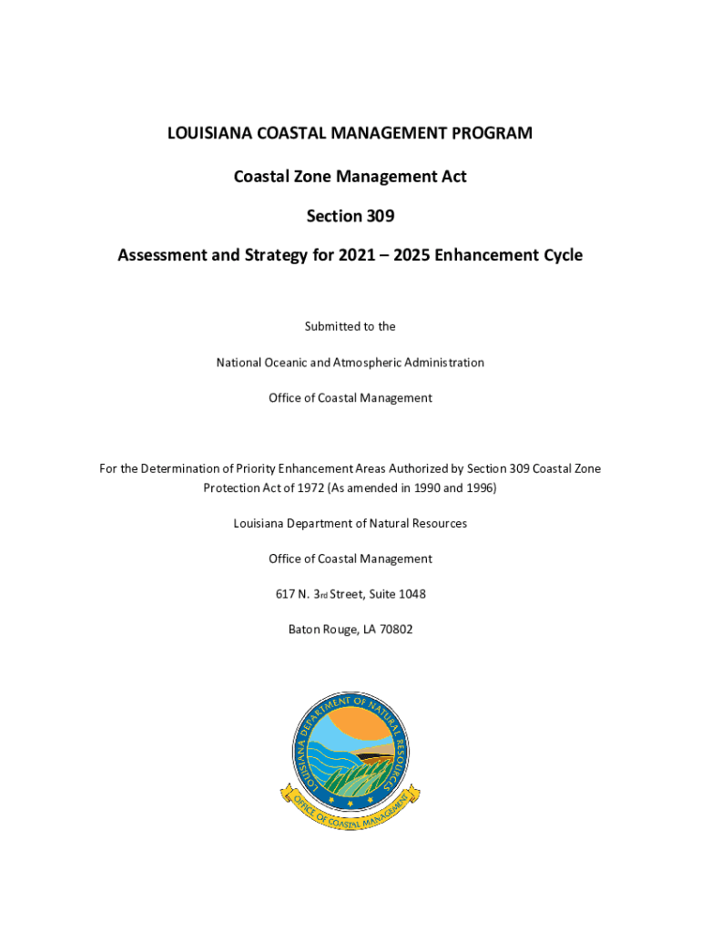 LOUISIANA COASTAL MANAGEMENT PROGRAM Coastal Zone Management Act Section 309 Assessment and Strategy for 2021 2025 Enhancement CycleSubmitted to the National Oceanic and Atmospheric Administration