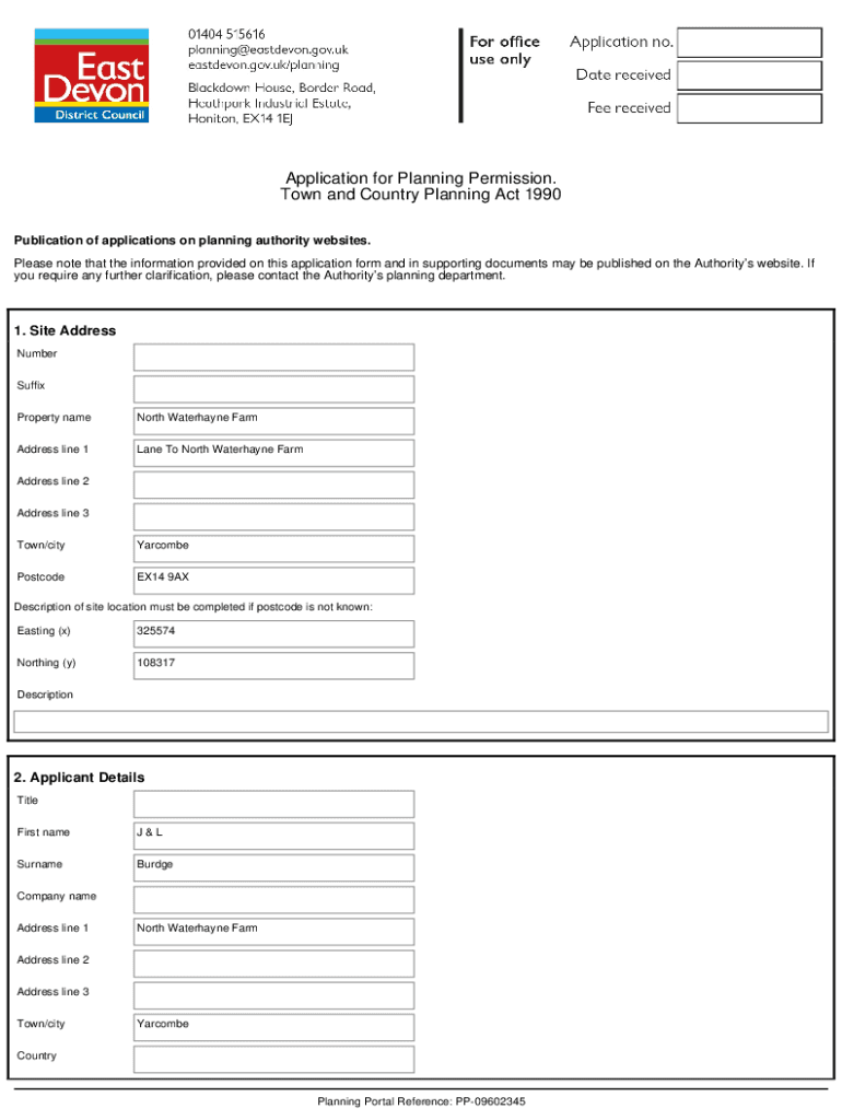 Application for Planning Permission. Town and Country Planning Act 1990 Publication of applications on planning authority websites. Please note that the information provided on this application form